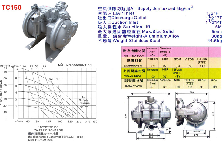 • TC150不銹鋼氣動隔膜泵