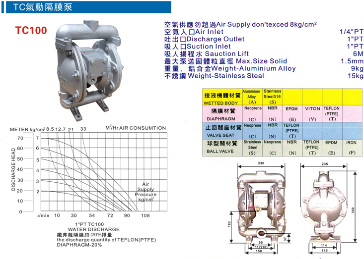 本公司生產的臺泉氣動隔膜泵是一種新型輸送機械,采用壓縮空氣為動力源,對于各種腐蝕性液體,帶顆粒的液體,高粘度、易揮發、易燃、劇毒的液體,均能予以抽光吸盡。其性能參數與聯邦德國的WLLDENPVMPS、美國的MARlOWPUMPS相近。