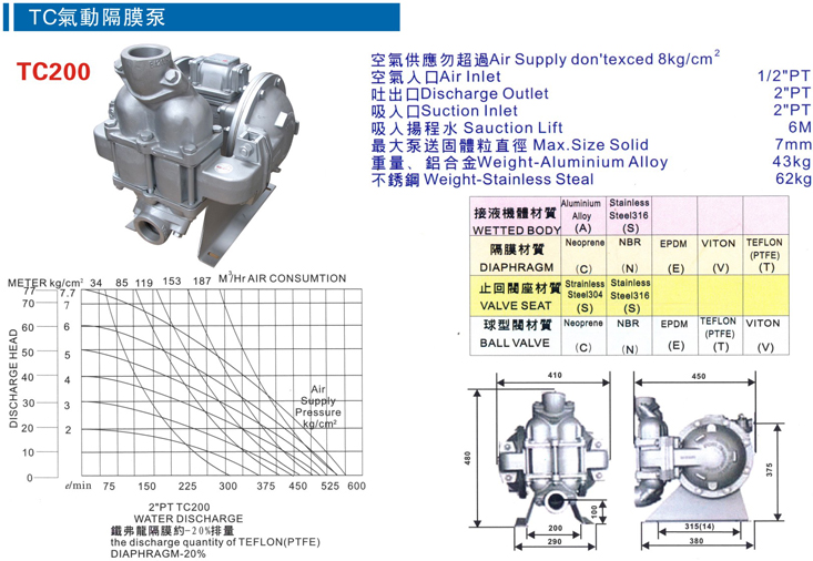 本公司生產的臺泉氣動隔膜泵是一種新型輸送機械,采用壓縮空氣為動力源,對于各種腐蝕性液體,帶顆粒的液體,高粘度、易揮發、易燃、劇毒的液體,均能予以抽光吸盡。其性能參數與聯邦德國的WLLDENPVMPS、美國的MARlOWPUMPS相近。
