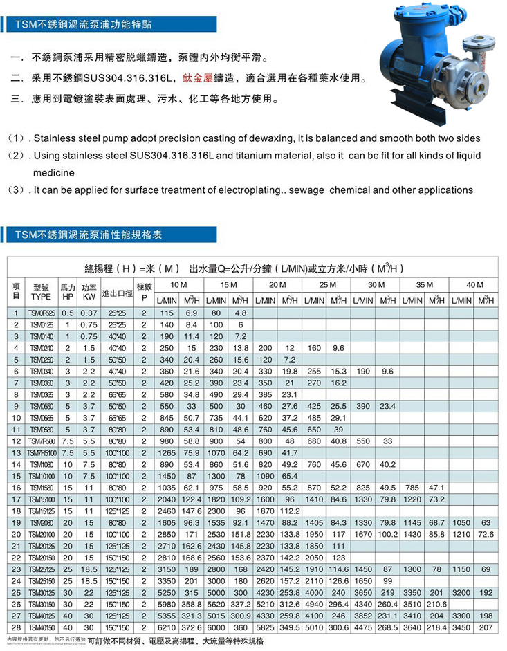 采用不銹鋼304/316精鑄而成,具有耐酸堿,耐高溫,耐磨等特點(diǎn),應(yīng)用于電鍍,涂裝,環(huán)保,化工等領(lǐng)域,又名污水泵,耐酸堿泵.可訂做防爆泵,二級(jí)能效泵,特殊電壓泵.