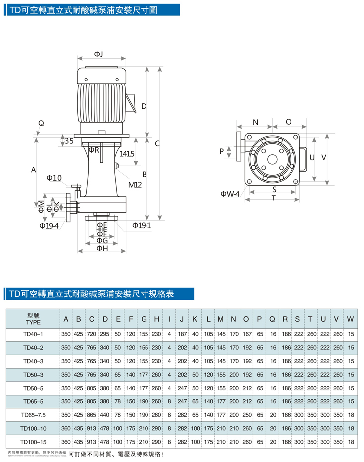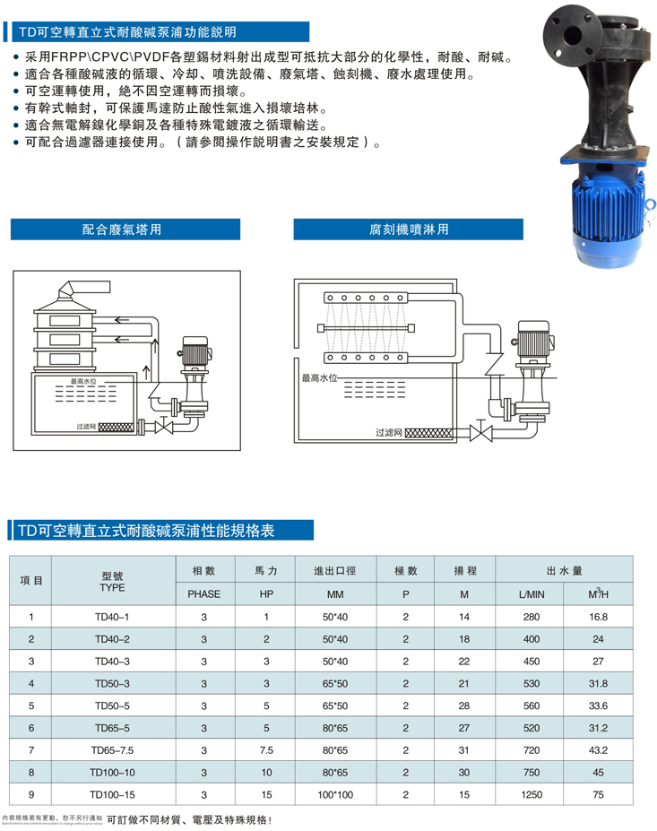 TD直立式耐酸堿泵的特點與優勢: