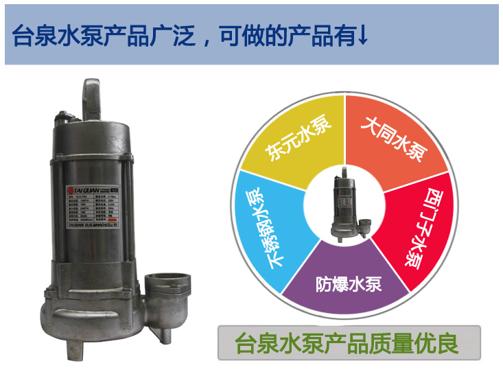 臺泉不銹鋼潛水泵,泵體采用304、316精密鑄造成型,無砂孔問題。水泵廣泛使用于工業廢水排放,建筑工地排送泥漿水,生活污水,及化工液體排送。